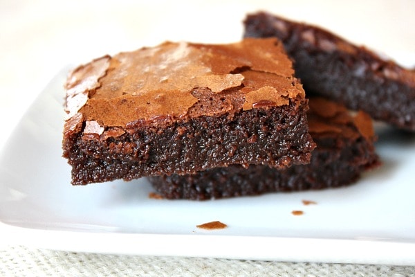 These brownies turn out to be extremely soft and gooey in the center. The tops crinkle ever-so-slightly, and turn out a slight crunch that the tops of brownies are supposed to have.